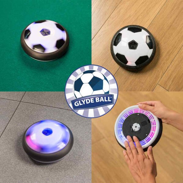 Glyde Ball lebdi kot začarana. Skrivnost je v inovativni zračni zavesi, ki ji omogoča tiho drsenje po skoraj vseh površinah: ploščicah, parketu in celo po preprogi. Glyde Ball drsi pod stolom, mizo ali celo kavčem. Glyde Ball je opremljena tudi z LED lučmi, ki igro naredijo še zabavnejšo.