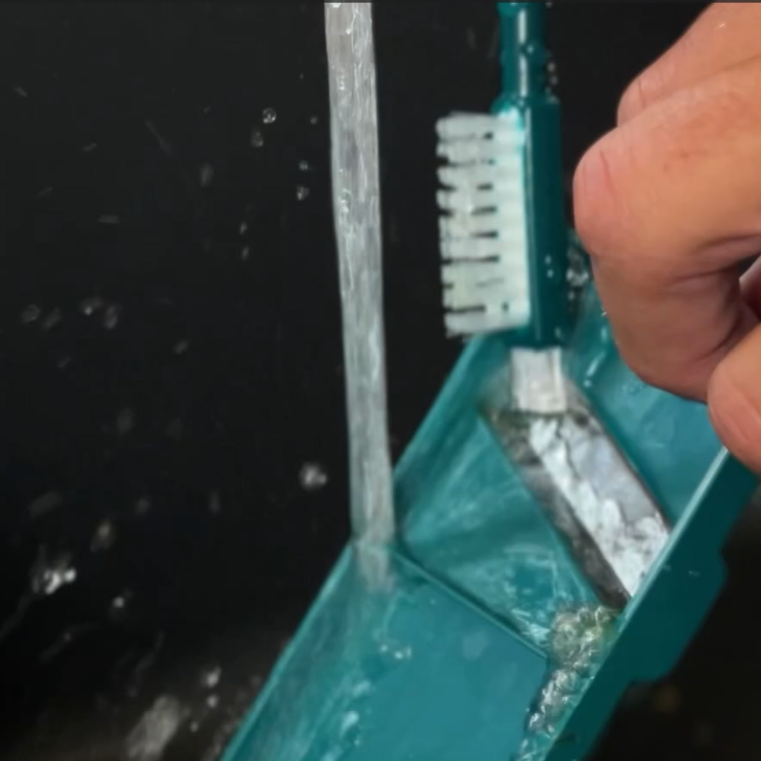 Ravno zato je priložena posebna čistilna krtačka - nikoli ne dotikate rezil z rokami. Plus, CELOTEN sistem lahko operete v pomivalnem stroju - vključno z rezili. Če čistite ročno, uporabite krtačko in tekoče vode, 30 sekund in ste končali.